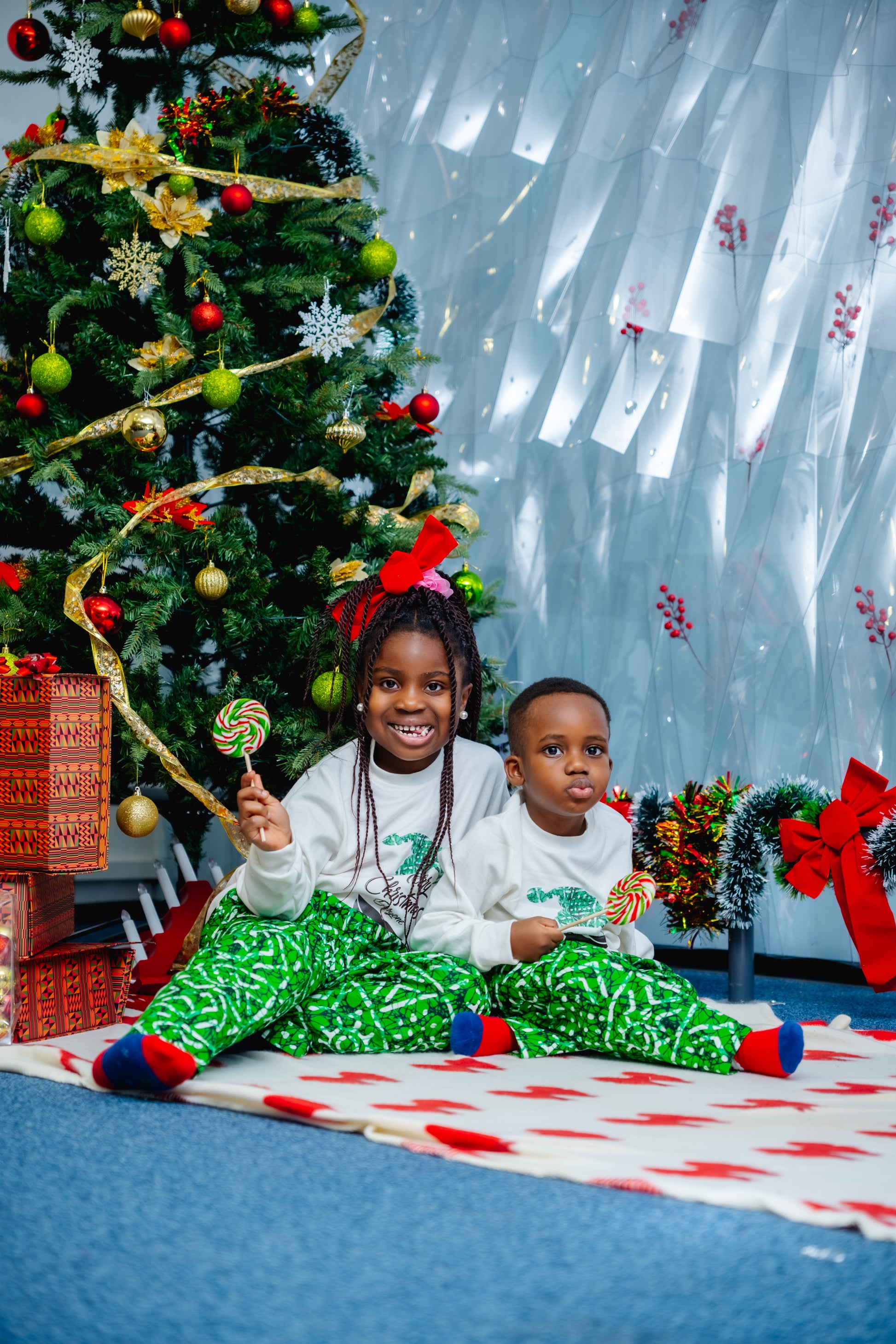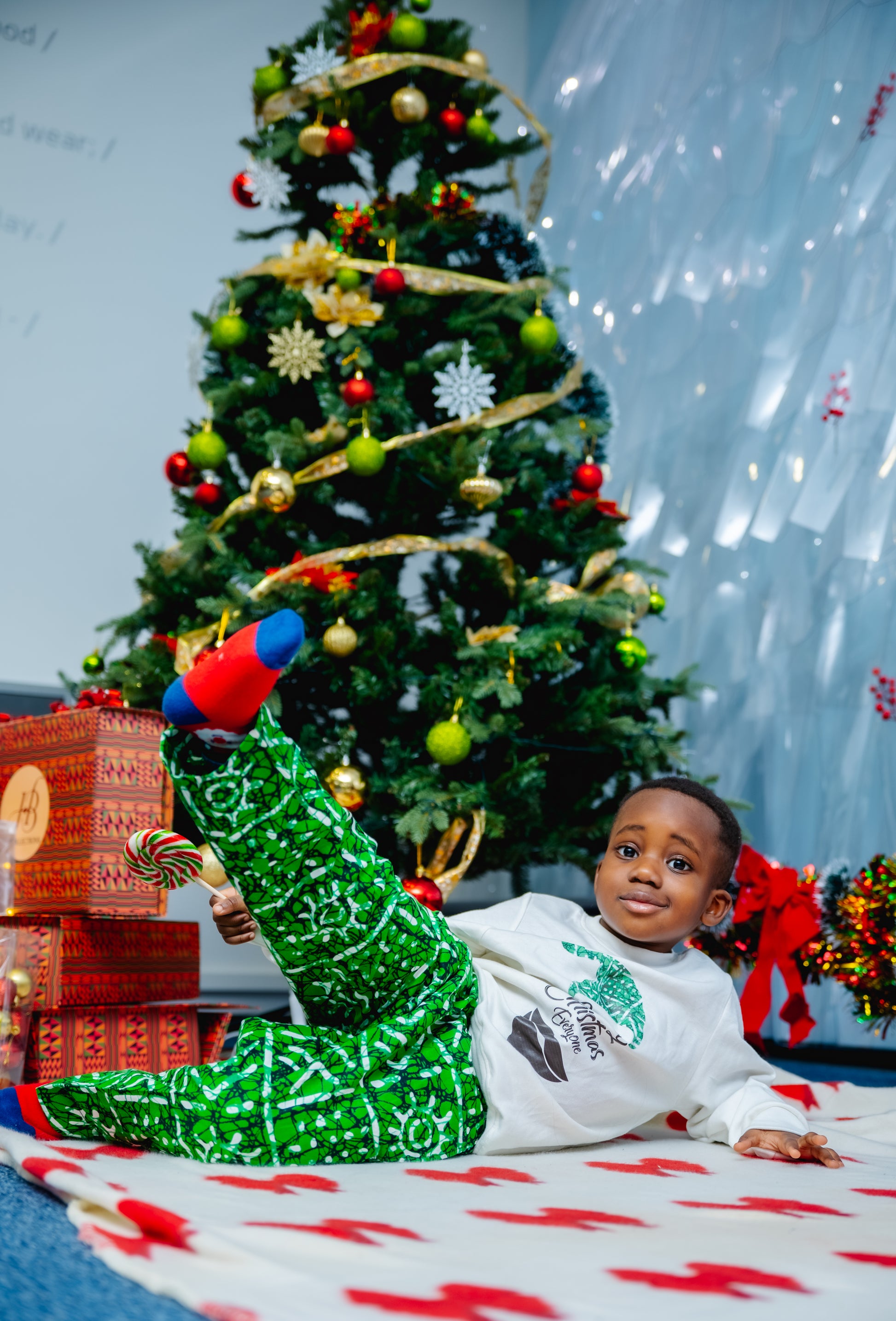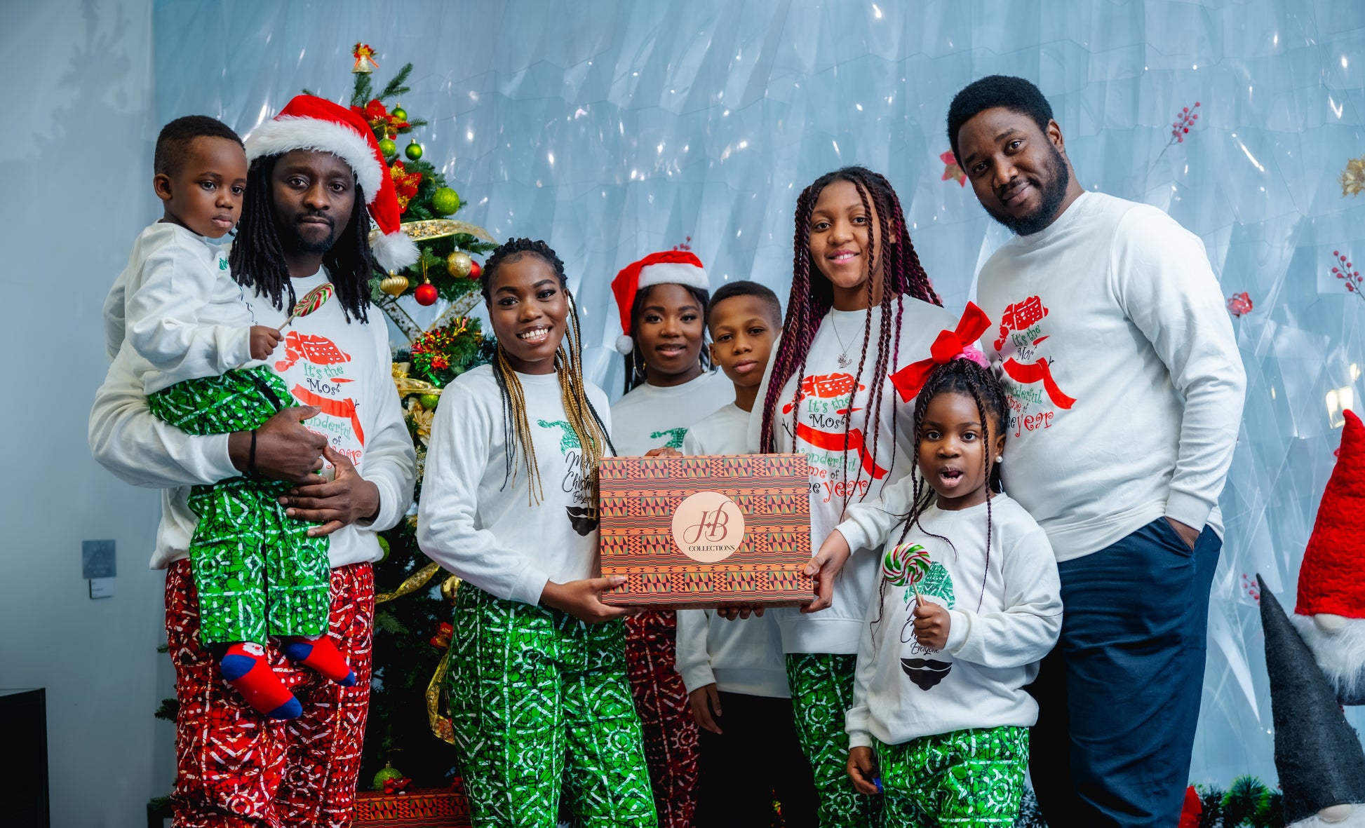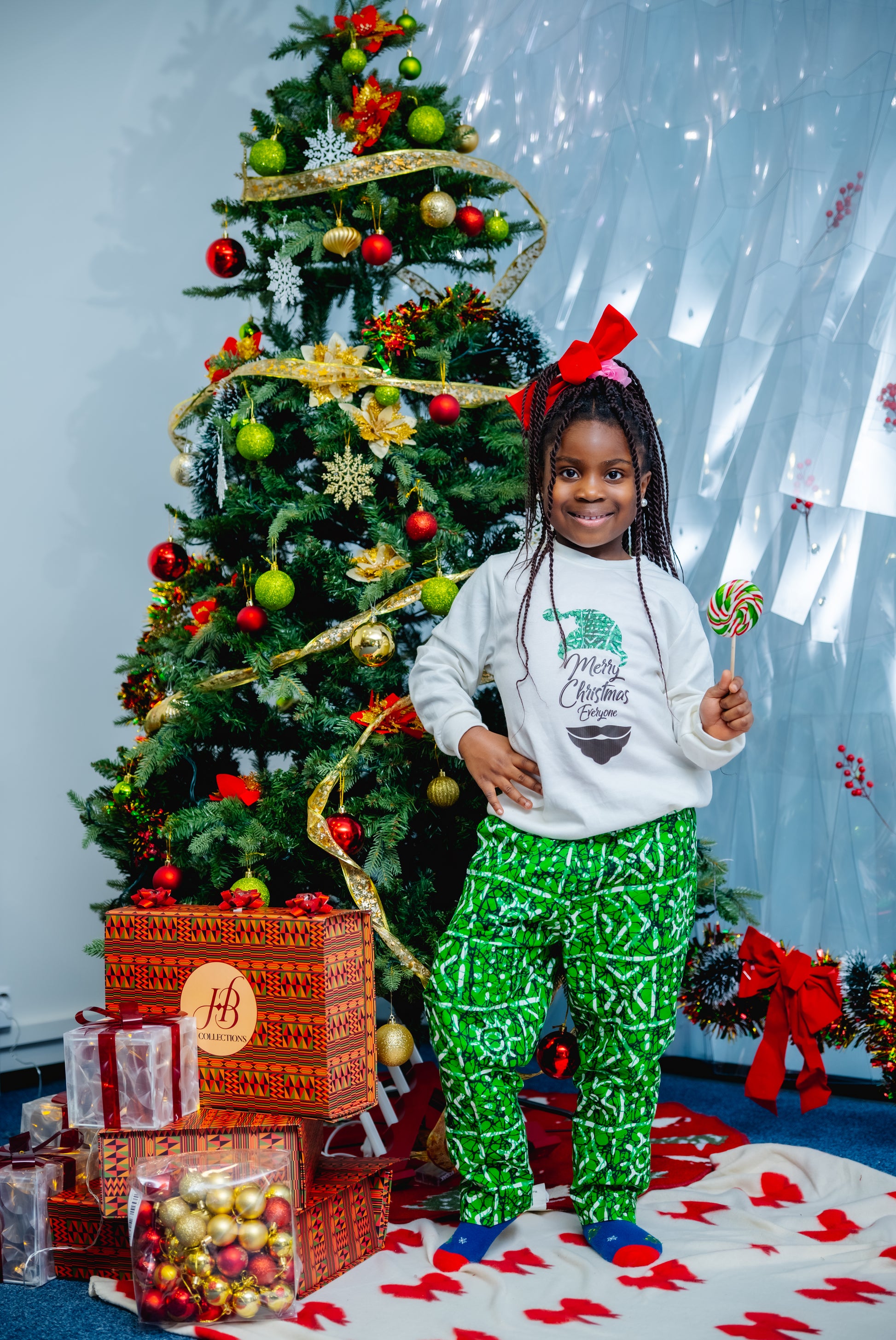 Stay festive and stylish all year round with our HBC sweater and pants set. Featuring a jolly Christmas sweater and tribal print trousers, this unisex set is perfect for the holiday season and beyond. Available in green and red, you'll be sure to stand out in any setting. Plus, the versatile pants can be worn anytime. Choose your size and color, and check our size chart for the perfect fit.