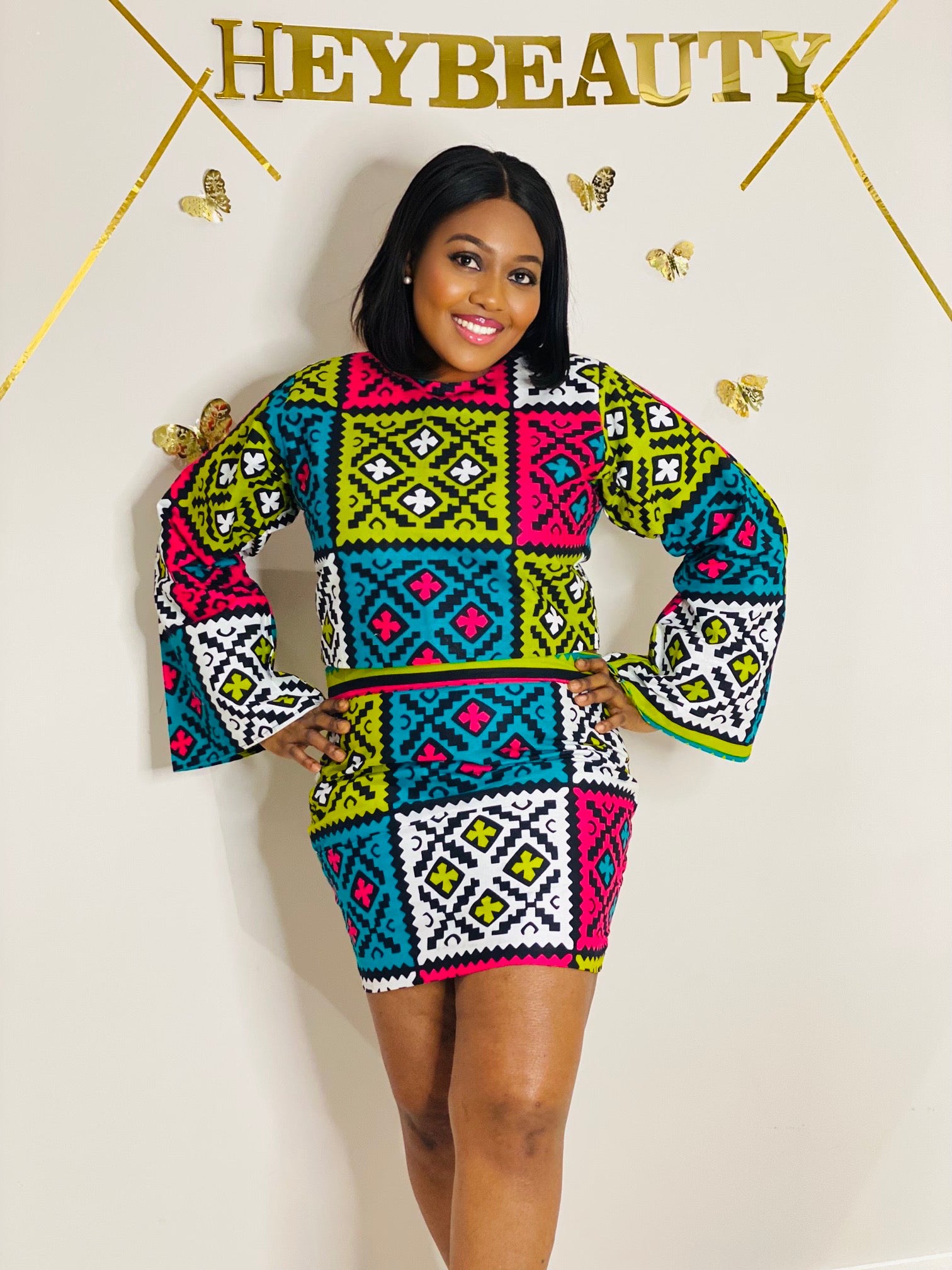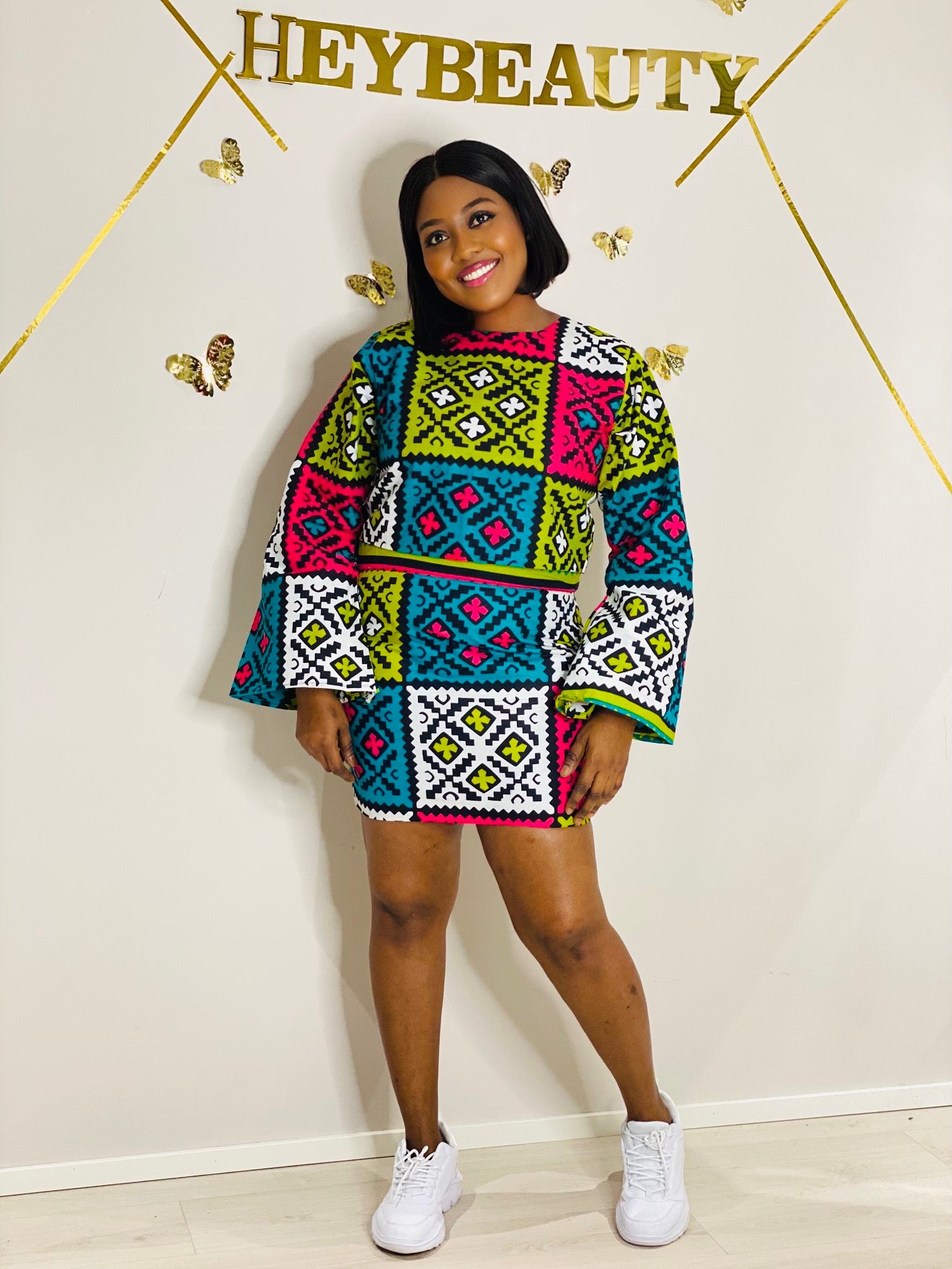 The two piece skirt and top is made of pure African print cotton fabric which is comfortable on every and any skin.