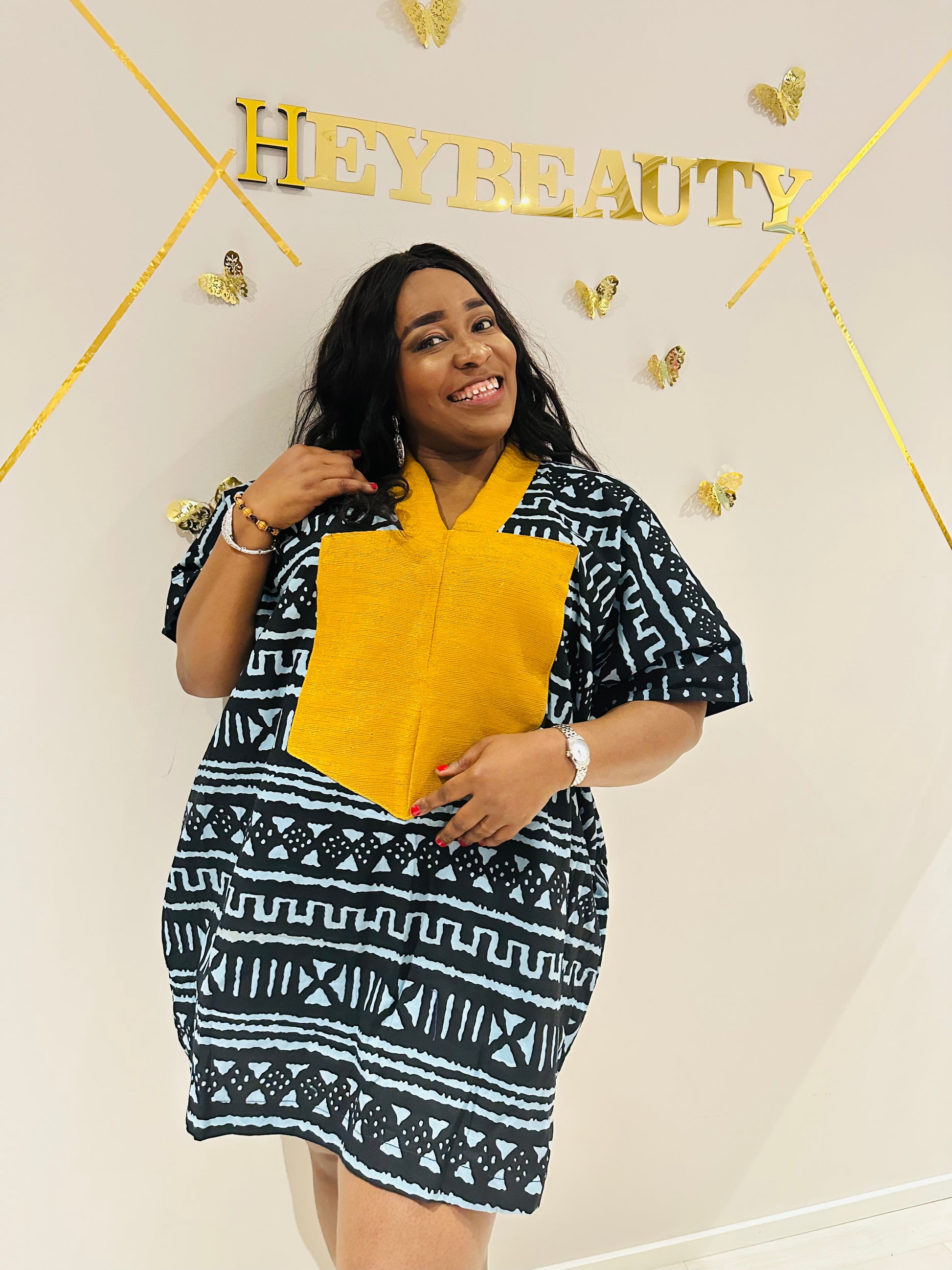 TUMI TUNIKA is made from African print cotton tribal fabric. Tribal print signifies different meaning from the African tribe.